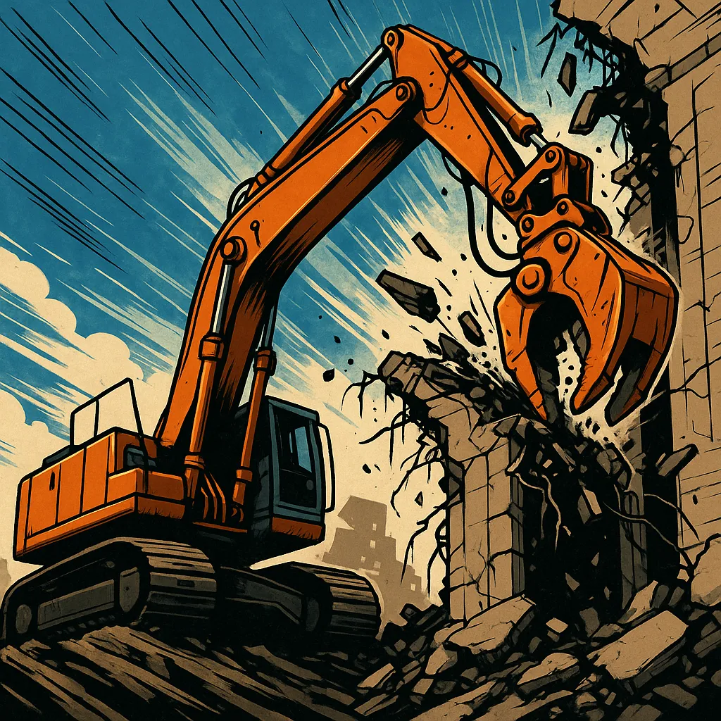 高さ50mを一撃で解体!イボキンが導入した日本最大級の超大型解体機「ZX1800K-3」 -